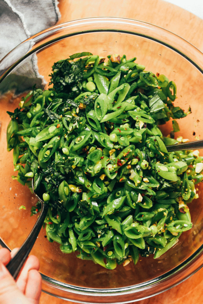 It’s lively, tangy, and just the right amount of savory, bringing the snap peas to life without overpowering their natural sweetness.